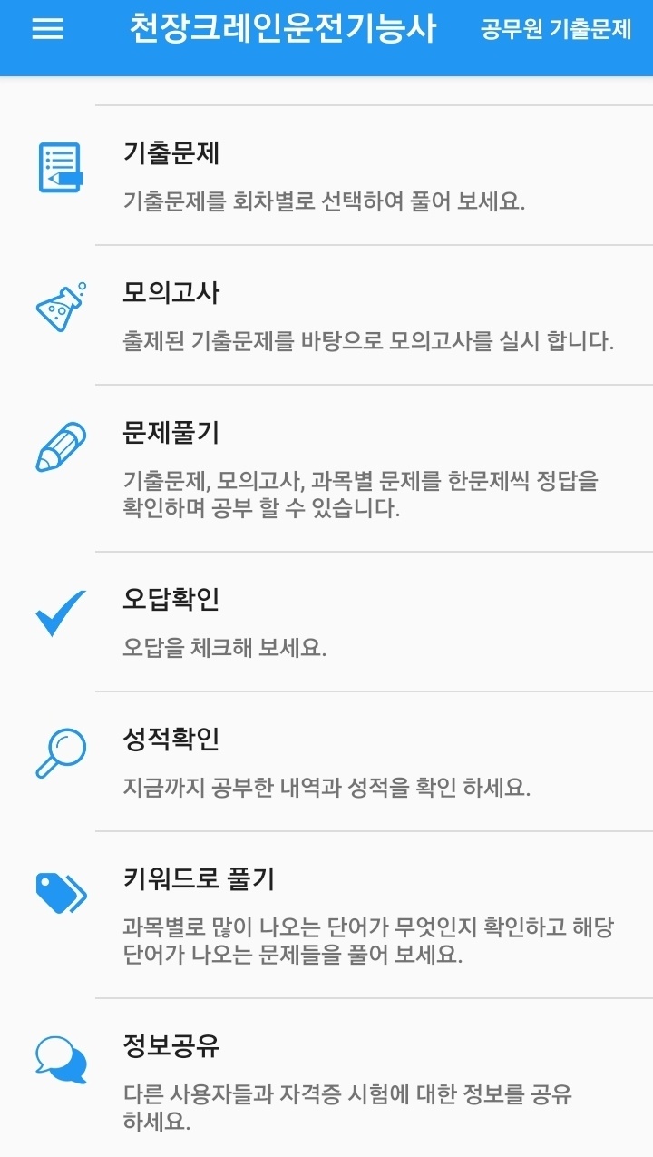 자격증 준비생들과 자격증 시험에 대한 정보 공유도 가능한 어플로 시험준비를 잘 해서 한번에 합격하시길 바라겠습니다.