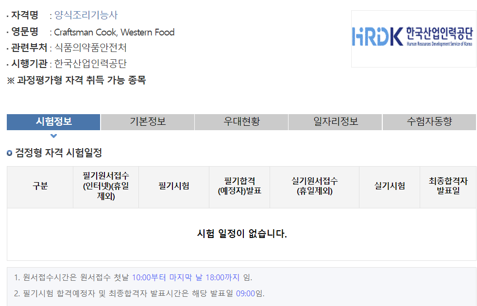 양식조리기능사 실기시험은 상시시험일정으로 시험일정은 아래 참고 하시면 됩니당