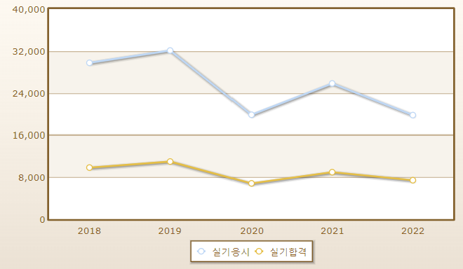 아래 연도별 필기, 실기 합격률 표 남겨둘테니 참고하셔욤