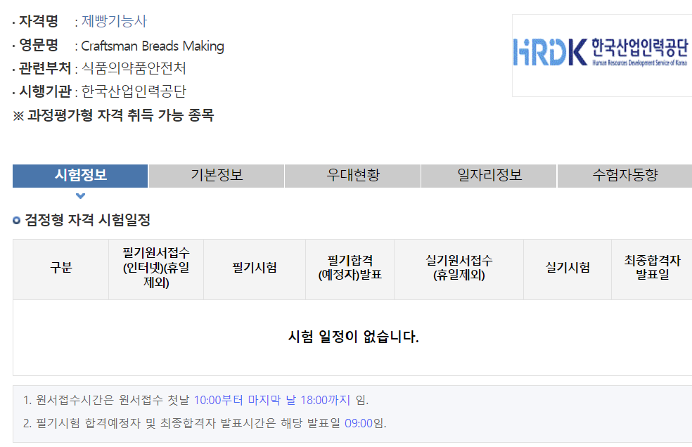 제빵기능사는 상시시험으로 시험일정은 아래와 같으니 아래 사진 참고 하시면 됩니다.