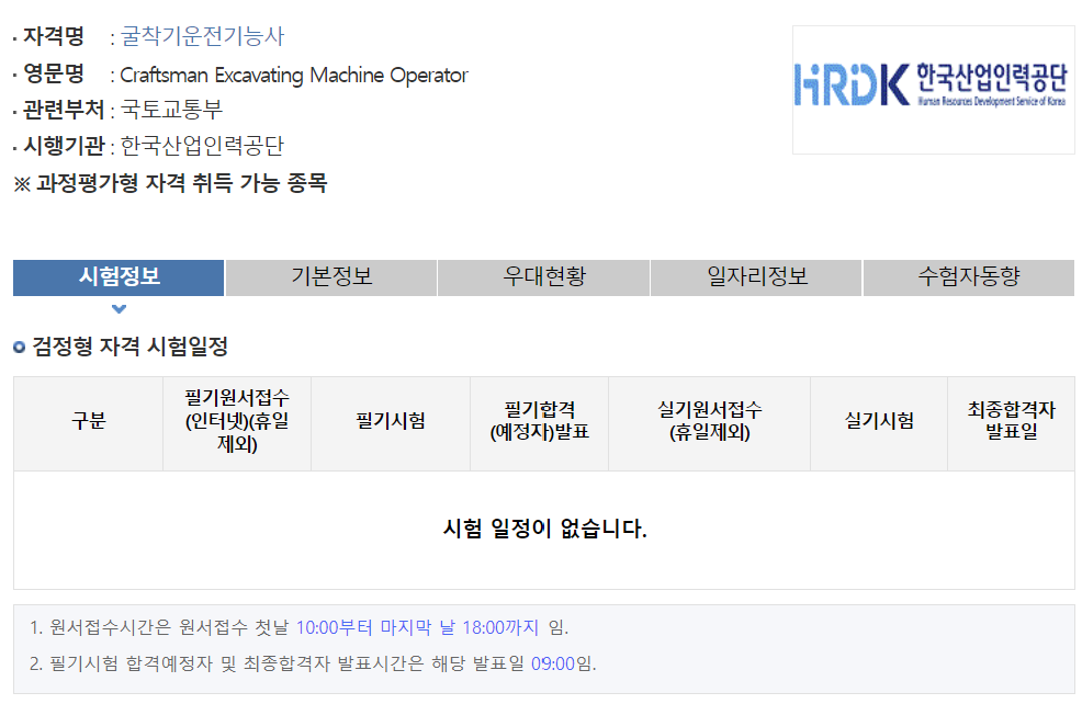 굴착기 운전기능사 정보