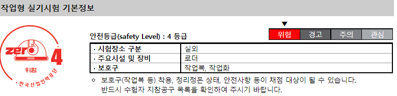 로더 운전기능사의 실기시험은 안전레벨 4등급의 시험으로 보호구 착용 및 수험생 지참공구 목록을 확인하여 챙겨가야 감점을 안 받으니 꼭 챙기시길 바랍니다.