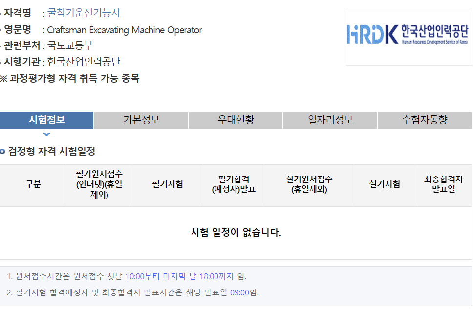 굴착기운전기능사 시험은 한국산업인력공단에서 진행하는 시험으로 필기시험, 실기시험은 상시시험 일정으로 이루어져 있으며 굴착기 운전기능사의 필기시험 일정은 아래와 같습니다.