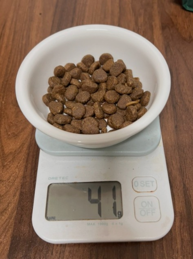 항상 주의 할점은 1주에 한 번씩 몸무게를 재어서 수치에 맞게끔 급여해주시면 좋겠습니다.