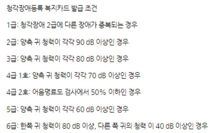 - 지방자치단체에서 지원하는 기초생활비를 수급하는 자 중에서 청력장애를 가진 경우에 해당합니다.