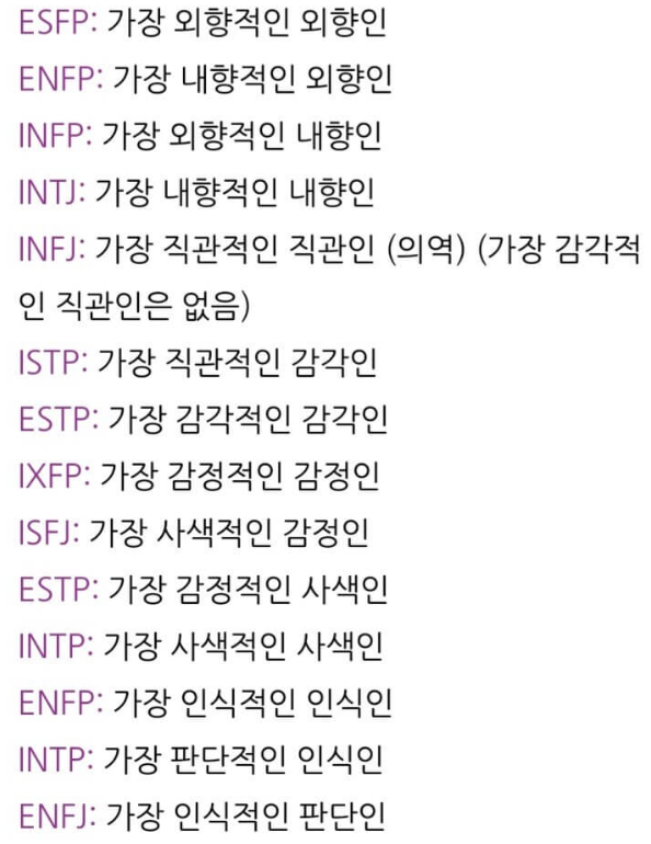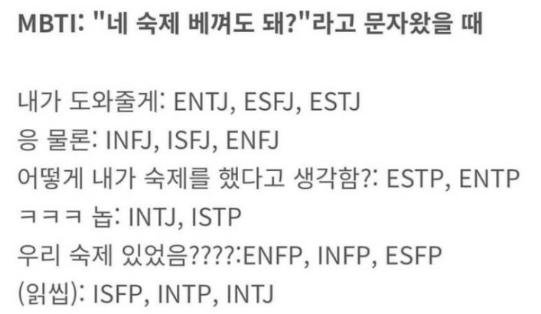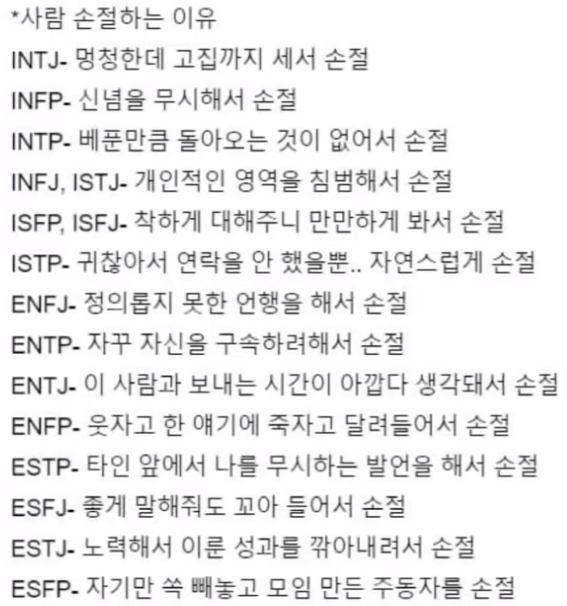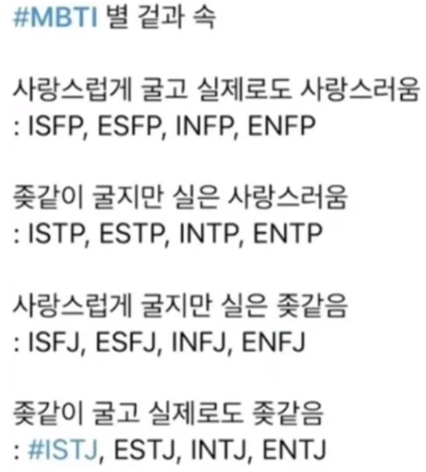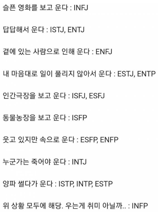 MBTI 유형별 재밌는 특징