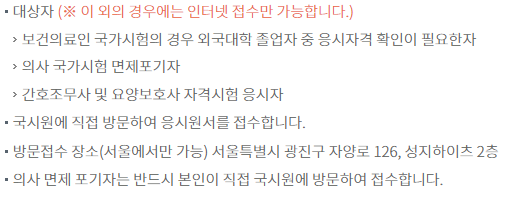 한국보건의료인국가시험원 응시원서접수 > 응시원서 접수방법 >