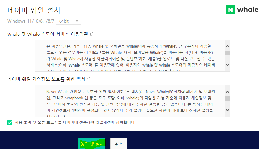 다운로드 버튼을 누르면 WhaleSetup.exe 파일이 다운로드하여집니다.