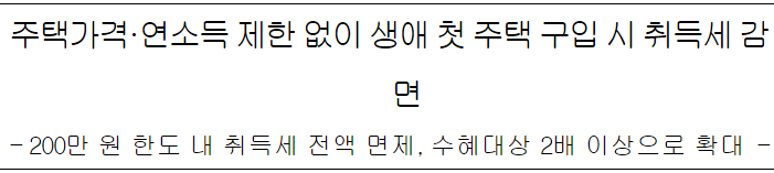 생애 첫 주택구입자에게 취득세를 면제해주는 제도가 6월 21일에 발표됐습니다. 또한 주택담보대출 등 LTV를 80%까지 완화는 방안도 오늘부터 적용됩니다. 생애 첫 주택구입 취득세 면제는 정말 감면이 아닌 면제입니다.