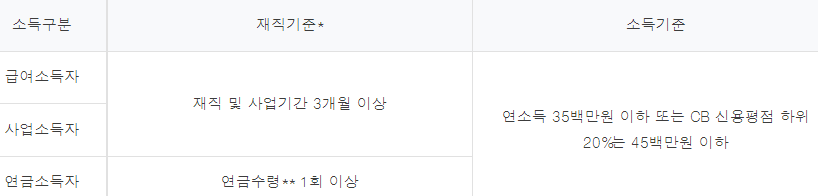자격 조건은 서민금융흥원의 보증서 발급이 가능하고 아래의 자격 기준을 충족하는 분들이면 가능합니다.
