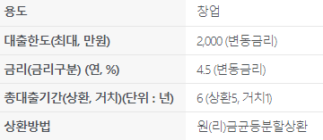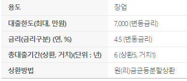 위 창업자금의 대출 기간은 총 6년 입니다.