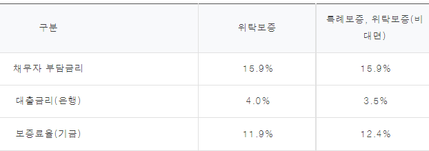 대출한도는 위탁보증이냐 특례보증이냐에 따라 아래와 같이 달라집니다.