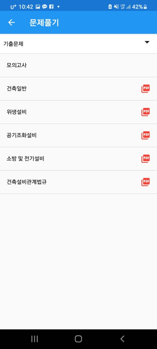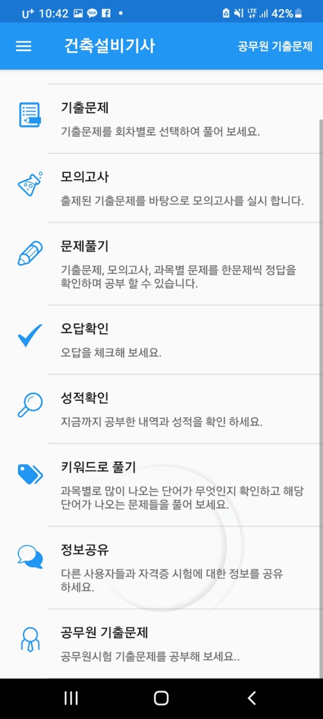이 어플은 건축설비기사 연도별 기출문제와 모의고사를 풀 수 있으며 채점이 가능하고,자격증 시험 준비생들과 정보 공유가 가능합니다.