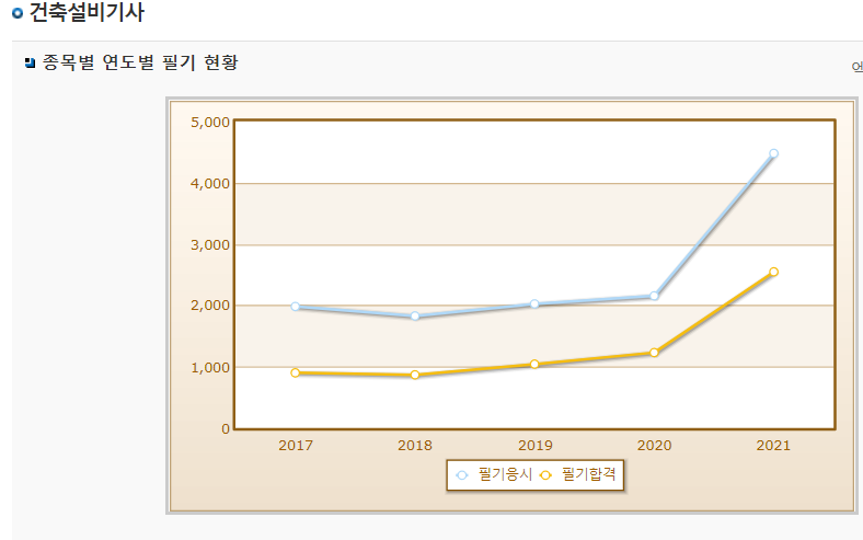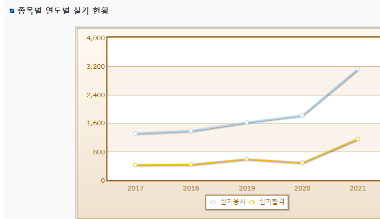 실기시험의 경우 2021년 기준 응시자 수는 3,122명으로 합격자는 1,158명입니다. 필기시험 합격률이 50% 정도인 점을 감안하여 필기시험 대비를 철저히 해야 합니다.