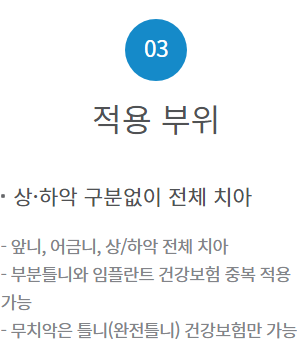 적용 부위는 아래턱 , 위턱 구분 없이 어금니,앞니 모두 적용됩니다.