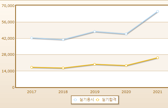 필기시험 합격률은 5~60%, 실기시험의 경우 40~45%로 딱 보통 정도의 난이도 시험입니다.