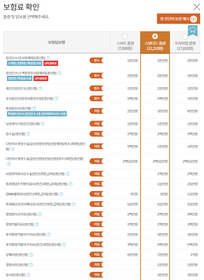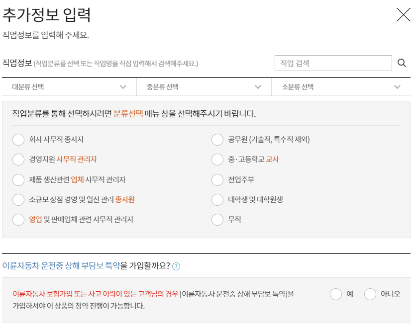 보험료 조회는 간단하게 가능하니 직접 해보시면서 원하는 담보를 보장 받는 것이 좋습니다.