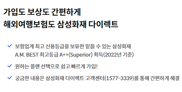 삼성화재 해외여행보험 보장내용 혜택 보험료 서비스 및 해외여행 보험 가입 시 주의사항