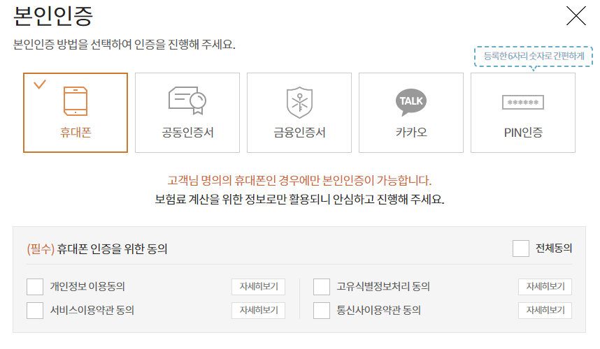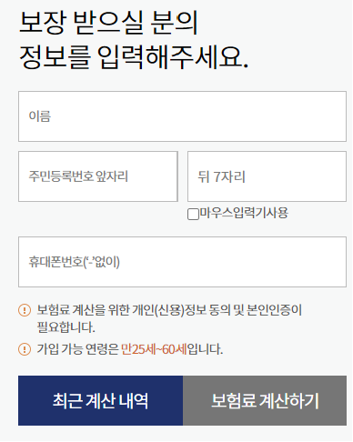 보험료 조회는 간단하게 가능합니다. 먼저 이름, 주민번호, 휴대폰 번호를 입력합니다.