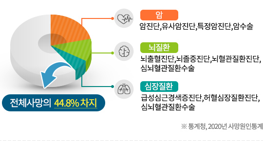 대표사망원인인 3대질병(암, 뇌질환, 심장질환)을 보장해요!