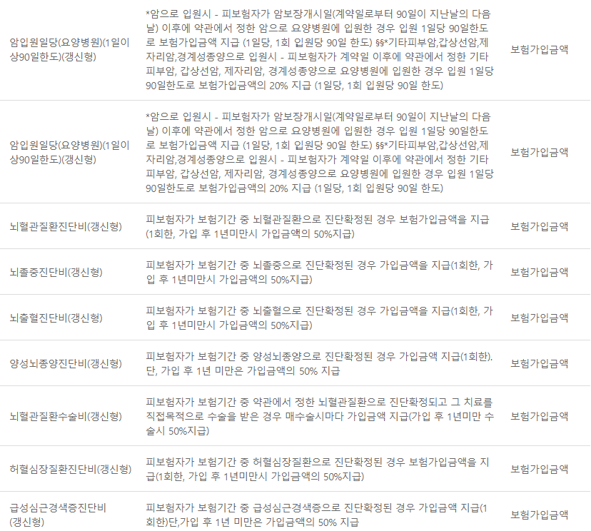 - 암직접치료입원일당(요양병원제외)(1일이상180일한도)(갱신형)