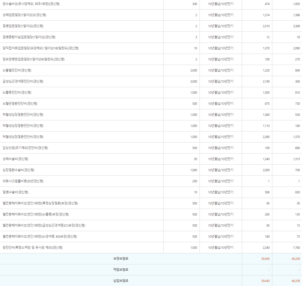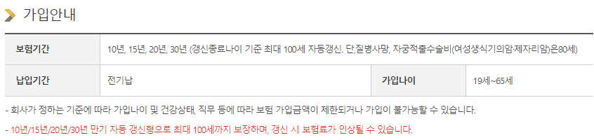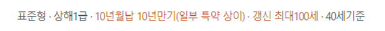 10년 만기(일부 특약의 경우 10년)갱신형 상품으로 갱신을 통해 최대 100세까지 보장 가능하며,갱신 시 보험료가 인상될 수 있습니다.