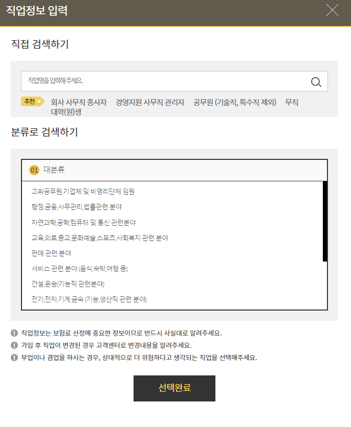 직업정보는 회사 사무직 종사자로 했습니다.