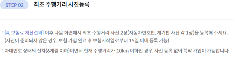 - 최초 주행거리 등록일부터 최종 주행거리 등록일까지의 일평균 주행거리를 계산한 후 마일리지 할인 특약 가입기간 동안의 주행거리를 산정합니다.