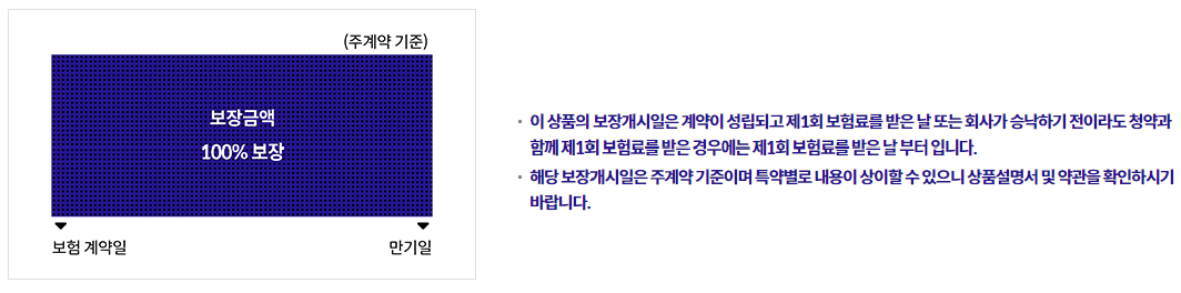 - 급성심근경색증 진단금의 경우 보험기간 중 급성심근경색증으로 진단확정 되었을 때 보장(최초1회)