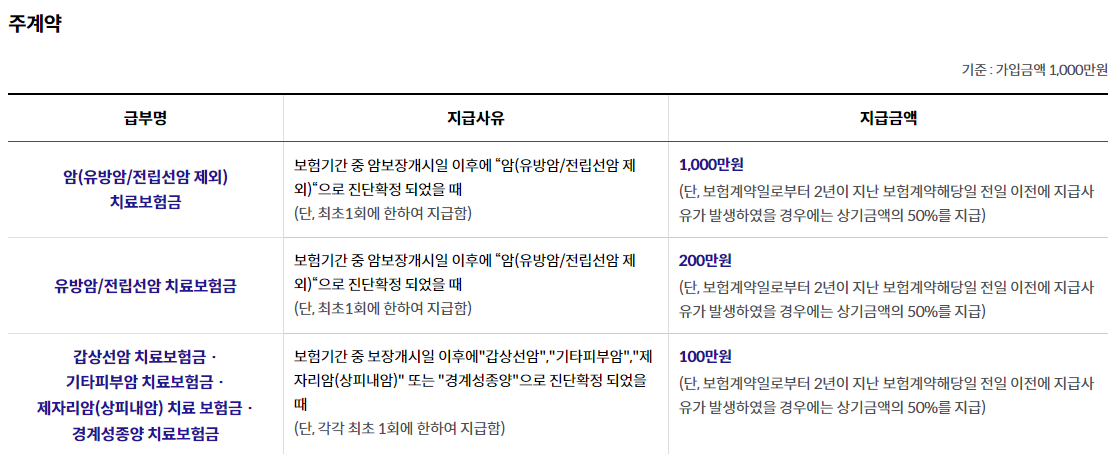 7. 주) 4에도 불구하고 갱신계약의 보험기간 중 유방암, 전립선암, 기타피부암, 제자리암(상피내암), 경계성종양 또는 갑상선암으로 피보험자에게 약관 제6조(보험금의 지급사유)의 보험금 지급사유가 발생하더라도, 그 지급사유가 최초계약의 보장개시일 이후 이미 보험금이 지급된 유방암, 전립선암, 기타피부암, 제자리암(상피내암), 경계성종양 또는 갑상선암과 동일한 경우(이미 보험금이 지급된 질병의 종양세포가 잔존하거나 재발 또는 전이된 경우) 회사는 해당 치료보험금을 지급하지 않습니다.