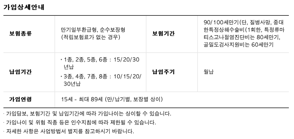 - 100세까지 보장되는 종신형 건강보험으로, 평생 건강을 지켜줍니다.