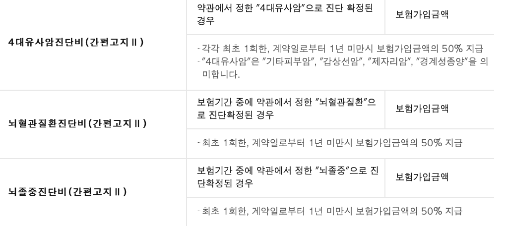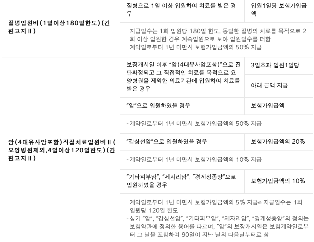 - 일부 질병은 보장 금액이 제한되어 있습니다.