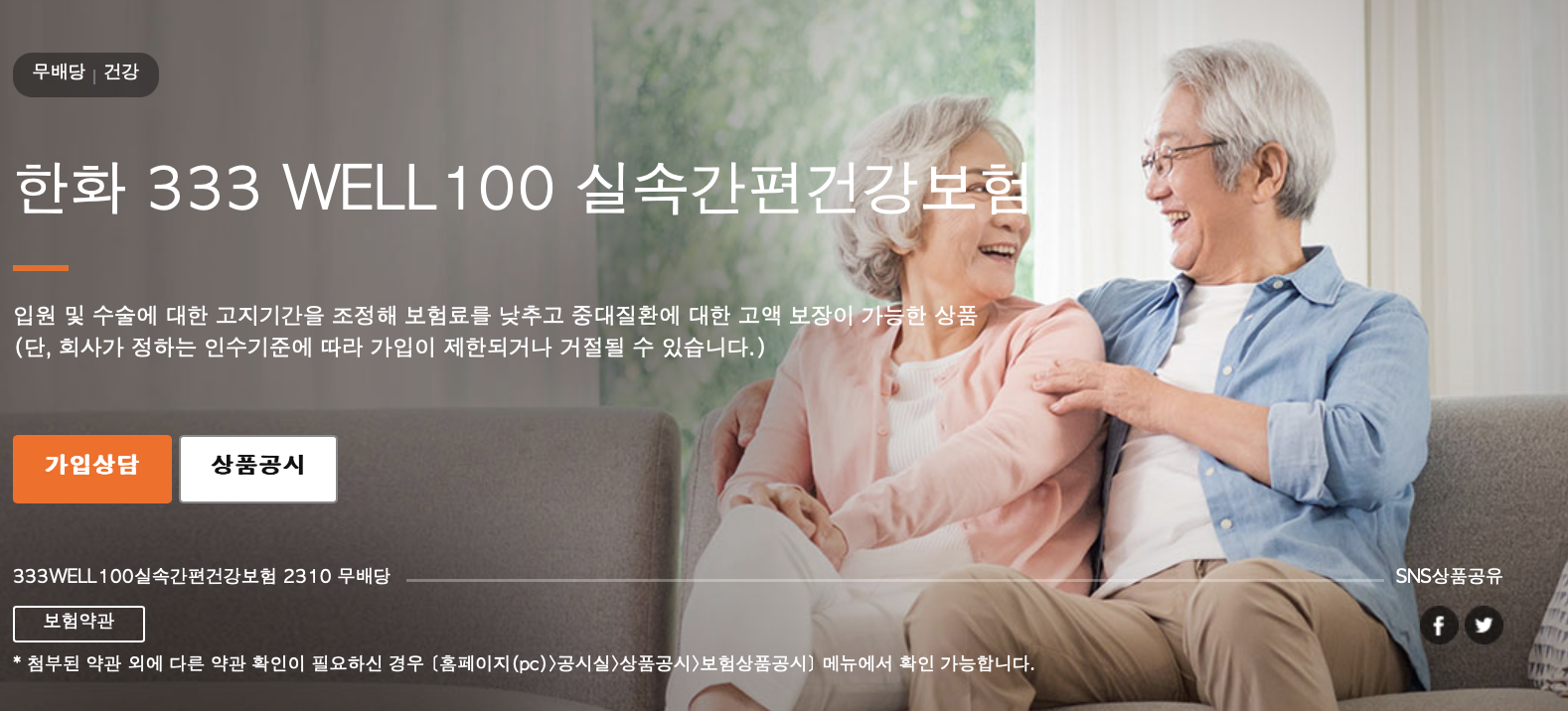 한화손해보험 실속간편건강보험 333WELL100 보장내역 및 보장 금액, 보험료 조회, 가입조건 알아보기
