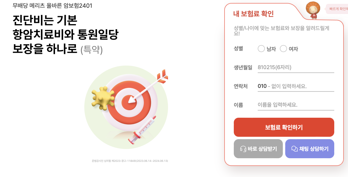 메리츠화재 올바른 암보험 보험료조회 및 가입