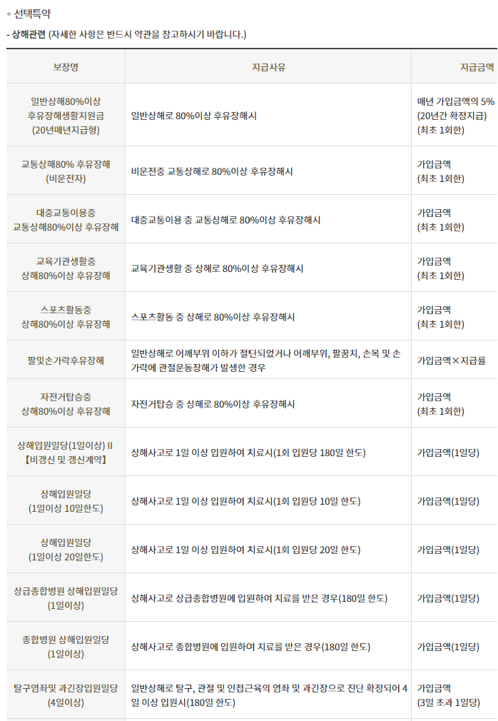이 외에도 다양한 선택 특약이 있습니다. 그리고 보장이 엄청 다양하므로 실제로 보험료를 조회해보면서 해보시는 것이 가장 정확합니다.