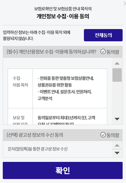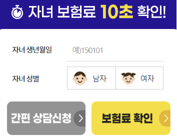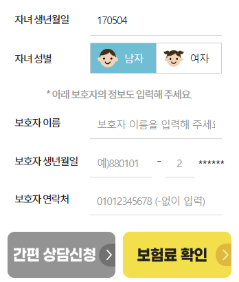 보험료 조회방법은 자녀 생년월일 및 성별을 입력 후 보험료 확인을 클릭합니다.