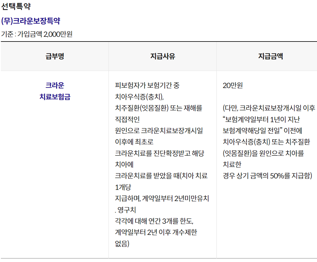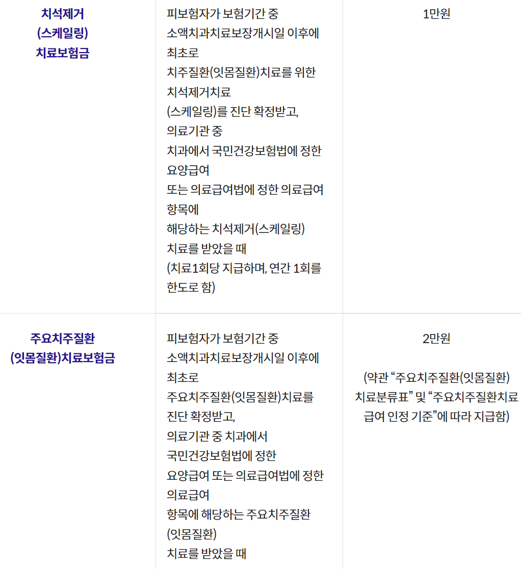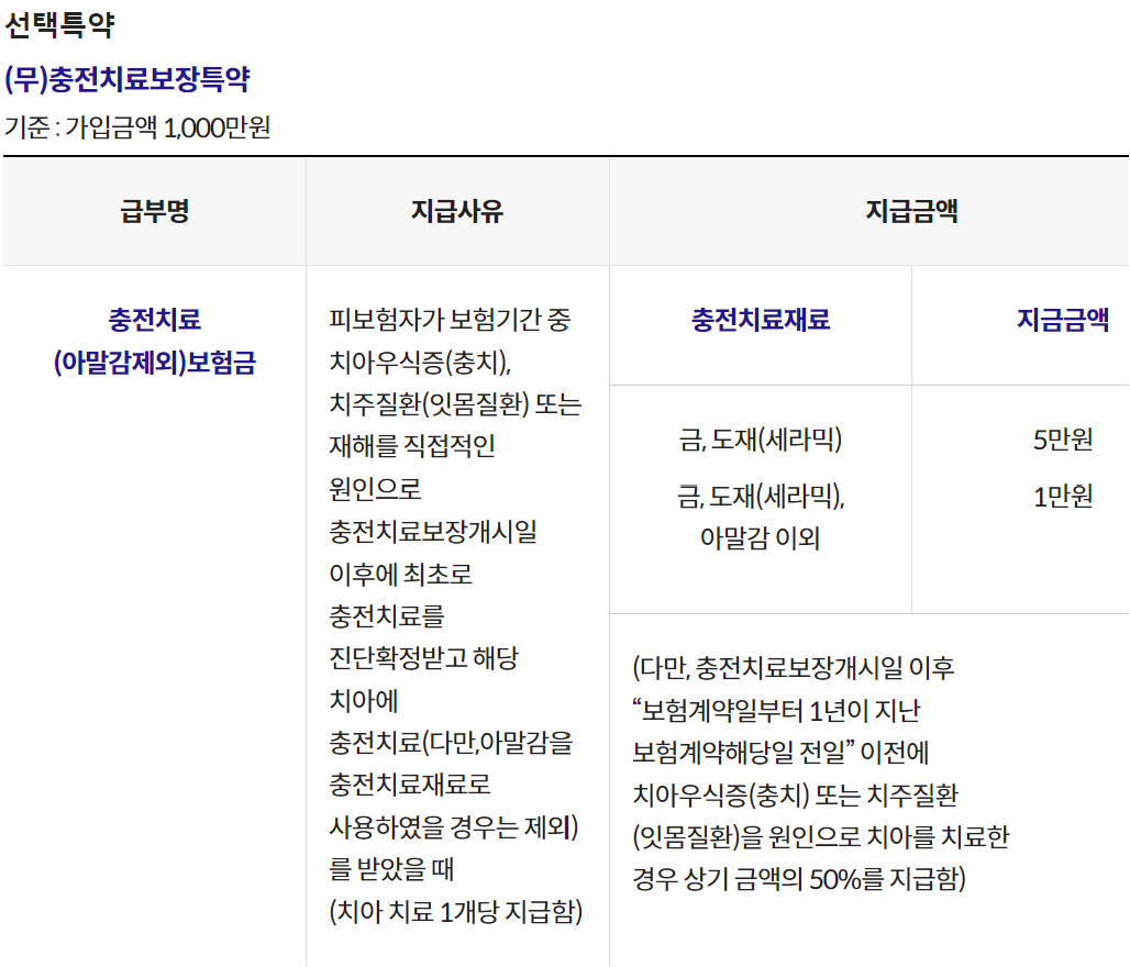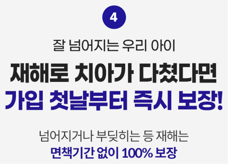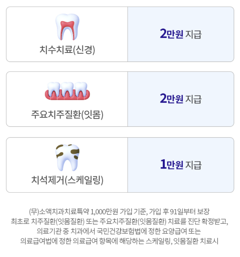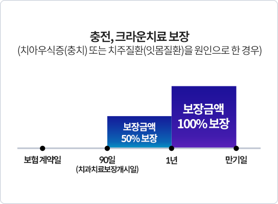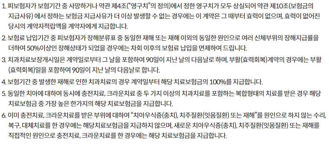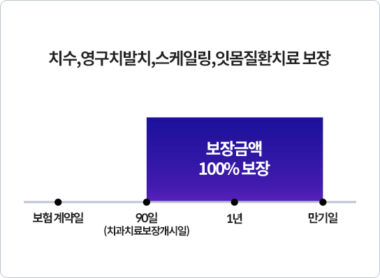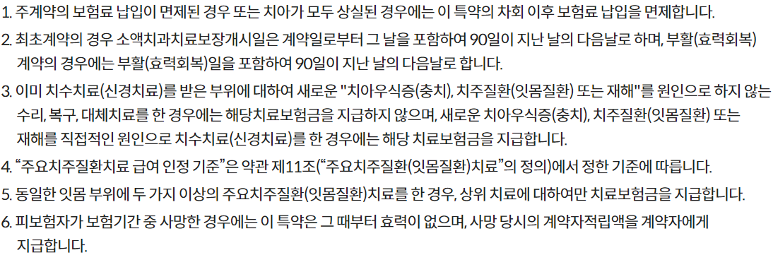 - · 다만, 계약체결 시 피보험자의 보험나이가 3세 미만인 경우 또는 보험기간 중 발생한 재해로 인한 치과치료의 경우에는 약관에서 정한 보장개시일로 합니다.