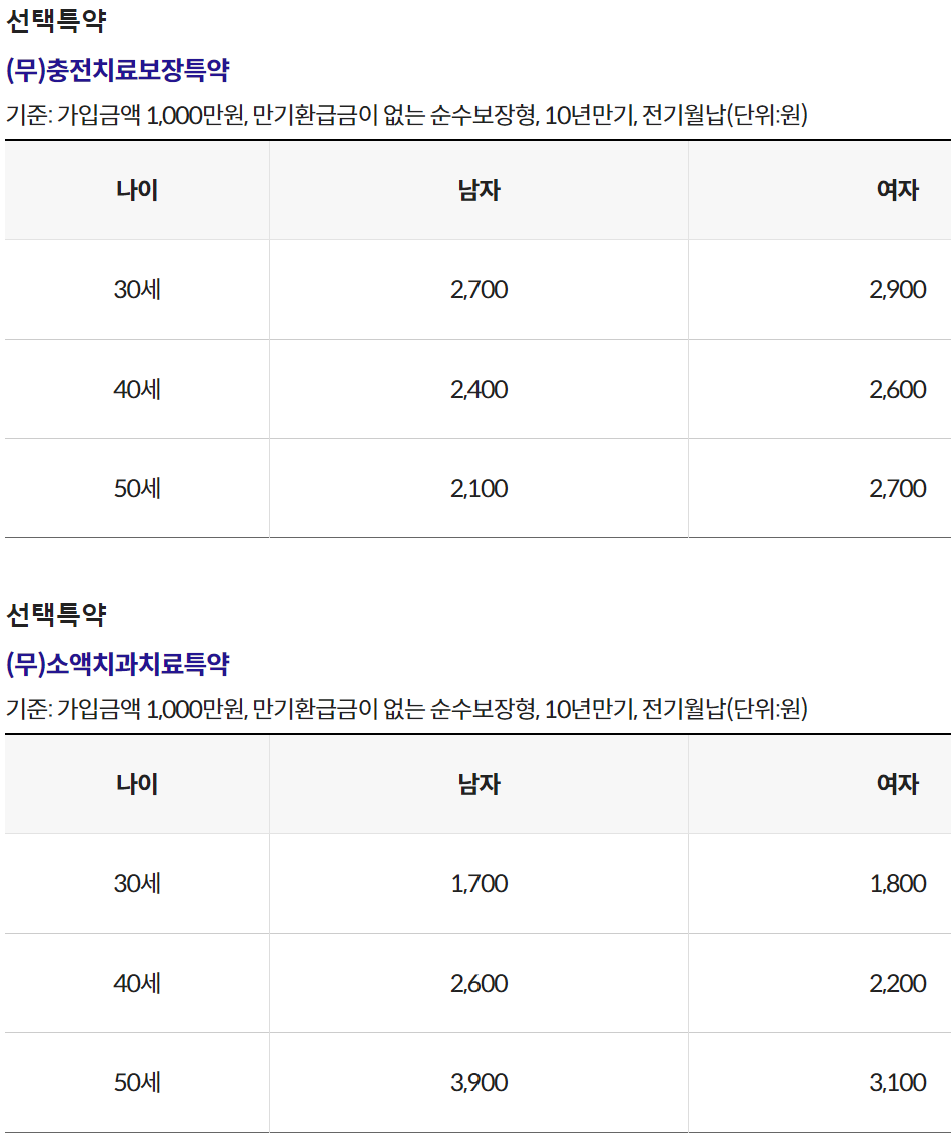 · 위 사항은 주계약 관련 안내 사항입니다.