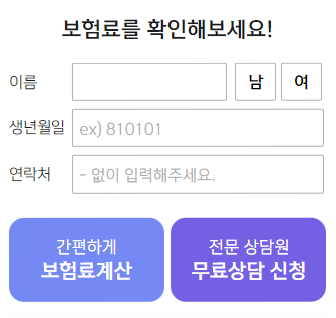 이름, 생년월일, 연락처 입력 후 간편하게 봏머료 계산을 클릭합니다.