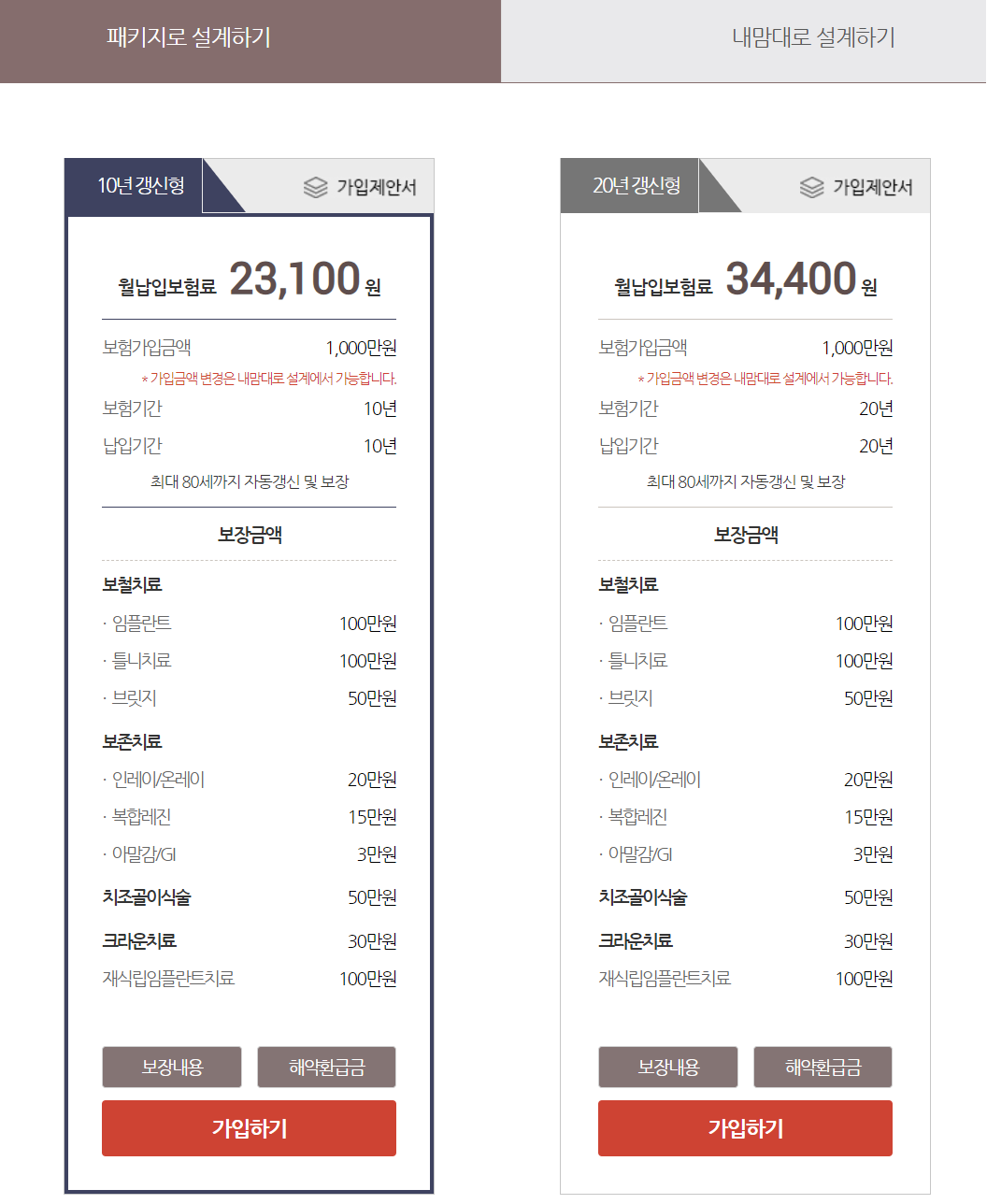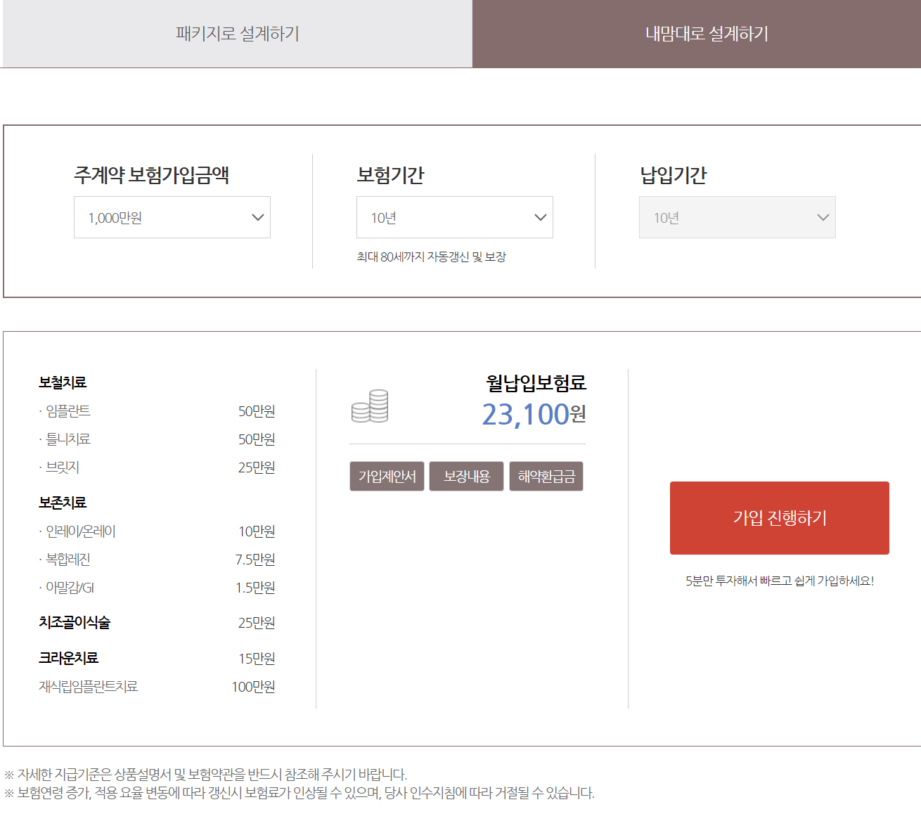 보험료는 패키지, 내맘대로 설계 및 보장금액, 보험기간 등 여러 조건에 따라 달라지므로 직접 조회해보시기 바랍니다.