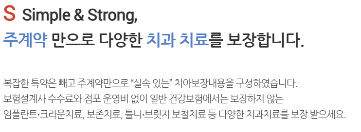 | 가철성의치(틀니)보철치료보험금 | 피보험자가 「보험기간 중 치과치료보장개시일 이후에 “치아우식증(충치)” 또는 “치주질환(잇몸질환)”을 직접적인 원인으로 영구치발치를 진단확정받고, 해당 영구치를 발치한 후 “가철성의치(틀니) 보철치료”를 받았을 경우」 또는 「보험기간 중 발생한 재해를 직접적인 원인으로 “영구치발치”를 진단확정받고, 해당 영구치를 발치한 후 “가철성의치(틀니) 보철치료”를 받았을 경우」 (다만, 보철물당 지급하며, 연간 1회 한도로 함) | 100만원 ※ 경과기간 2년 미만인 경우 50% 지급 |