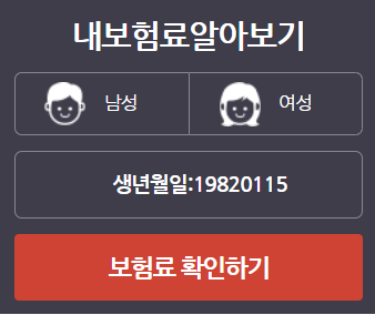보험료 조회방법은 간단합니다. 생년월일 ,성별 입력 후 보험료 확인하기를 클릭합니다. 그럼 아래와 같이 보험료가 계산됩니다.
