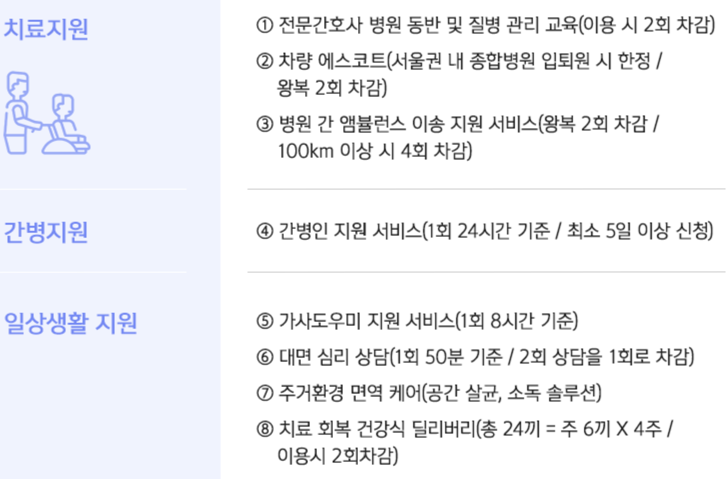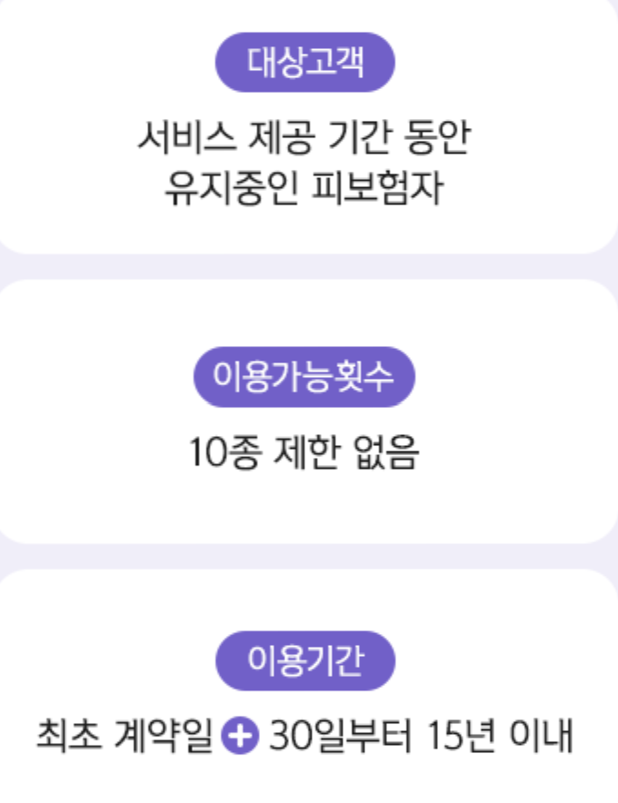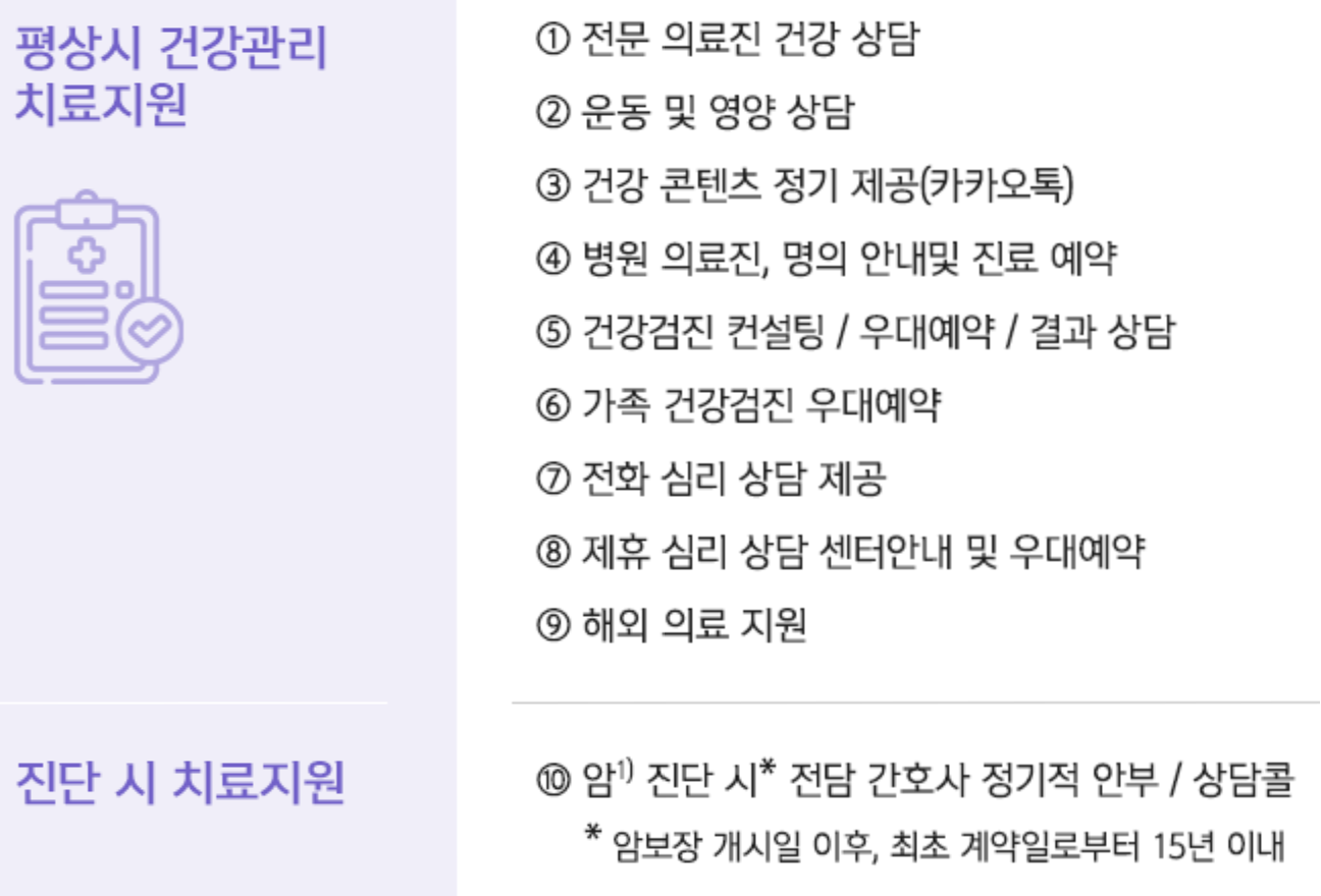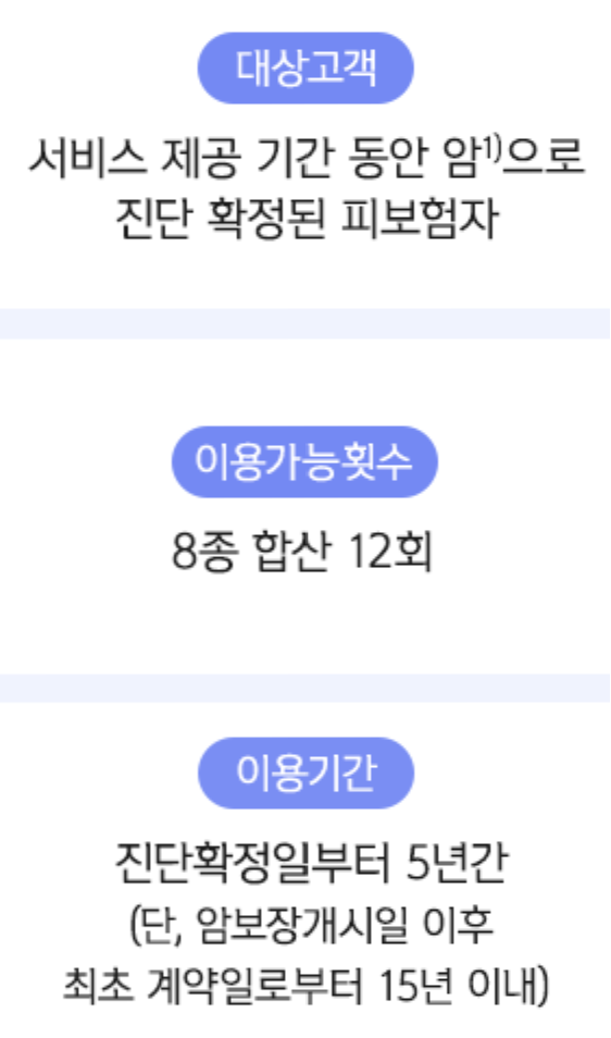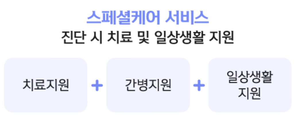 - 1) 암 : “여성유방암”, “전립선암”, “기타피부암”, “갑상선암”, “제자리암”, “경계성종양”, “대장점막내암”, “비침습방광암”으로 진단된 경우에는 스페셜케어서비스가 제공되지 않습니다.