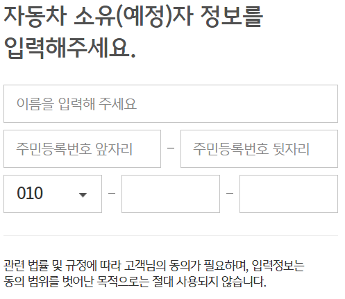 자동차 소유주의 인적정보 적고 휴대폰 인증을 통해 바로 자동차보험료 산정이 가능합니다.