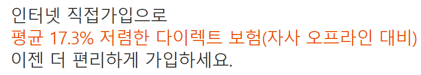 KB다이렉트 자동차보험은 자사의 오프라인 보험 가입 보다 비용이 저렴합니다.