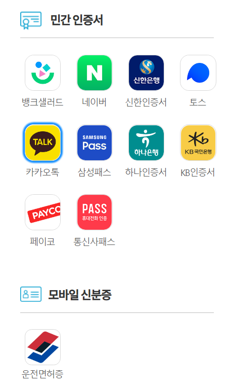 저는 카카오톡 인증서를 통해 진행하였습니다.