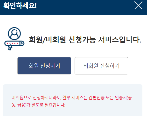 회원이라면 회원 신청하기를 누르고 비회원이라면 비회원 신청하기를 누릅니다.