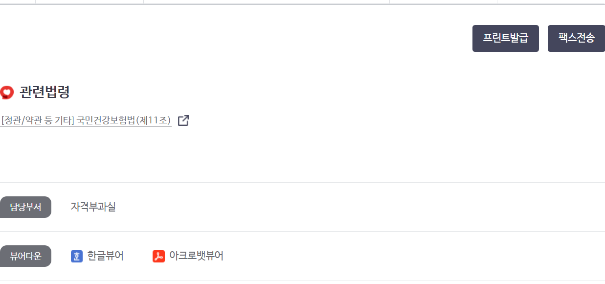 자신의 자격득실확인서가 필요한 것을 체크하여 프린트 발급을 하면 인쇄가 되는 것이고 , 팩스전송을 하면 팩스전송이 됩니다.