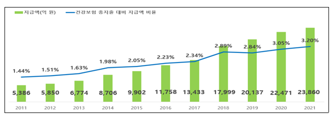 본인부담상한제를 통해 과도한 의료비로 인한 국민의 경제적 부담을 경감하기 위해서 연간 본인부담금 총액이 개인별 상한금액을 초과하는 경우 초과 금액을 국민건강보험공단이 부담하여 가입자 및 피부양자에게 돌려주는 제도로 수혜자와 지급액이 꾸준하게 증가하고 있습니다.