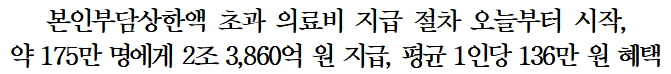 이번 개인별 본인부담상한액에서 의료비 본인부담상한액을 초과하여 의료비를 지출한 174만 9,831명에게 총 2조 3,860억원이 지급됩니다.